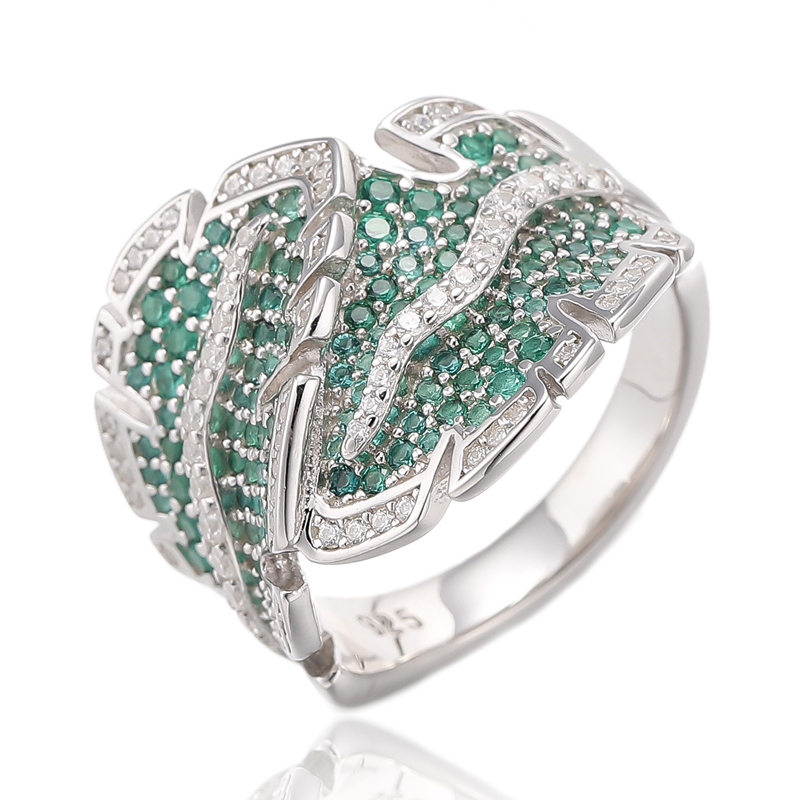 7.99Anillo redondo de plata rodiada con circonita cúbica verde nano y blanca 925