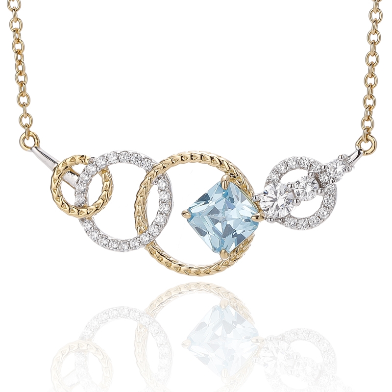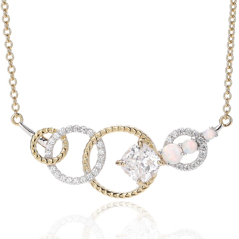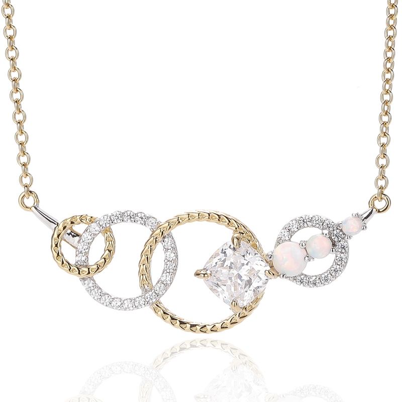 4.66Colgante de plata 925 con ópalo redondo y circonita cúbica blanca en forma de cojín, con baño bicolor.
