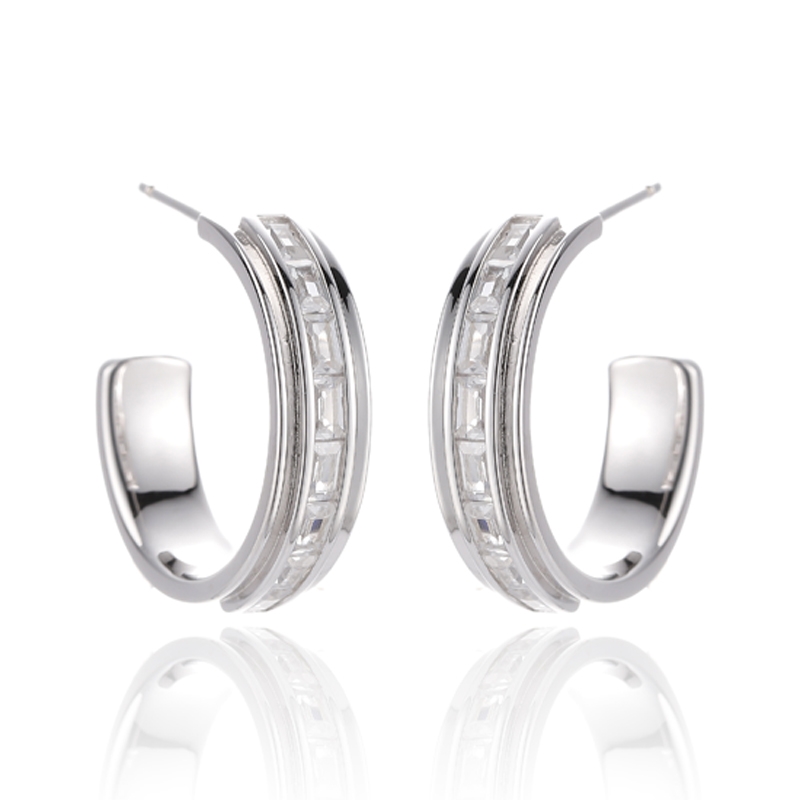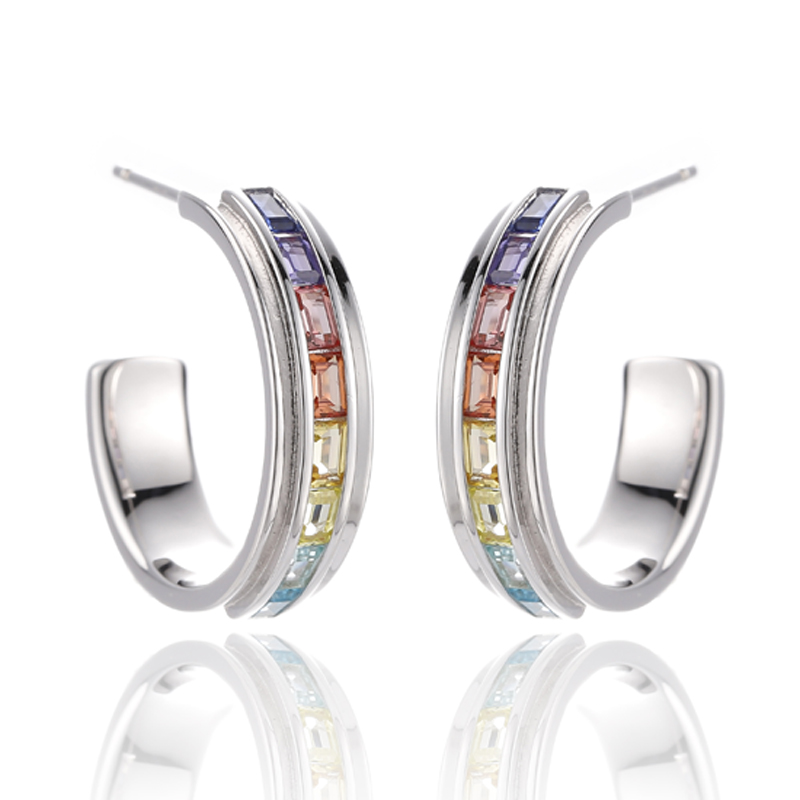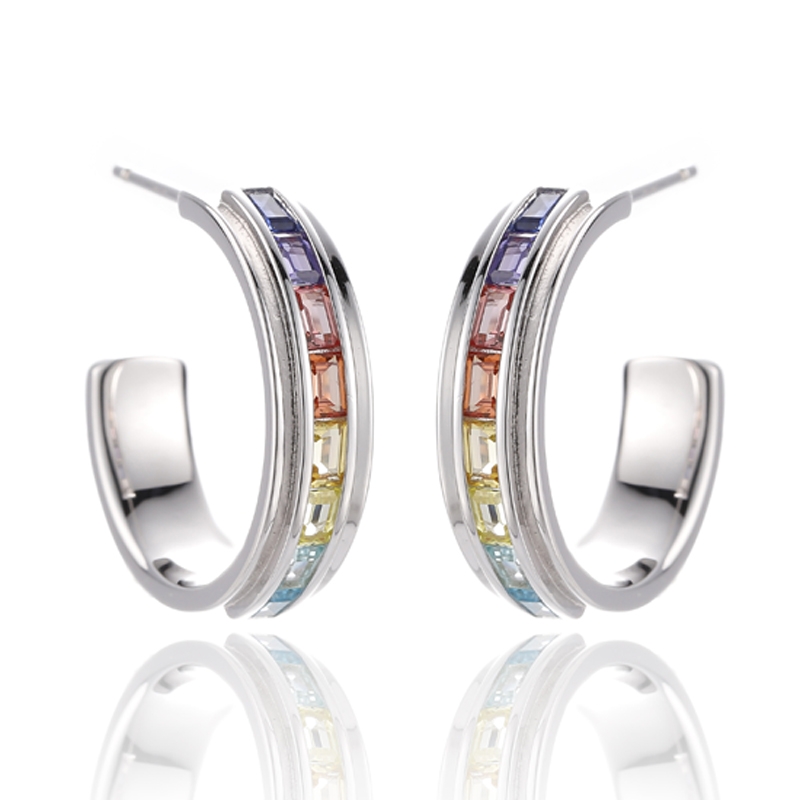 6.75Pendiente de plata rodiada con circonita cúbica arcoíris baguette