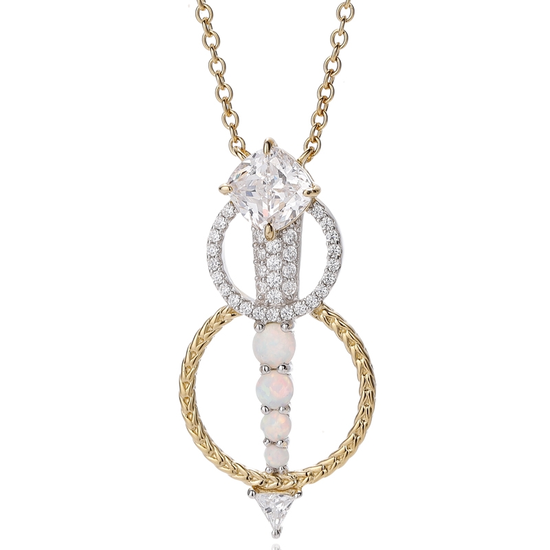 4.81Colgante de plata con ópalo redondo y circonita cúbica blanca en forma de cojín, con baño bicolor.